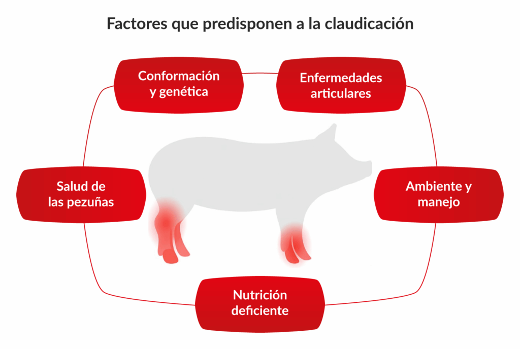 La claudicación está asociada a la reducción del desempeño reproductivo de las cerdas, pudiendo llevar a menores tasas de parto, aumento de nacidos muertos y momificados, además de prolongar el intervalo destete-celo. Se ha demostrado que el estrés y los niveles sostenidos de cortisol impactan directamente sobre la ovulación y la liberación de hormonas encargadas de regular el ciclo reproductivo.